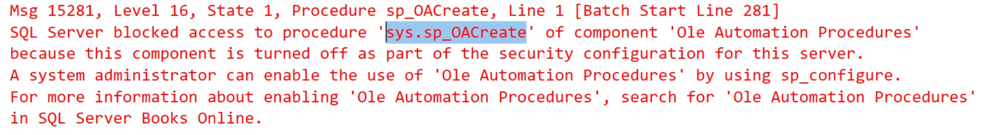 EXEC sp_configure 'Ole Automation Procedures', 1;